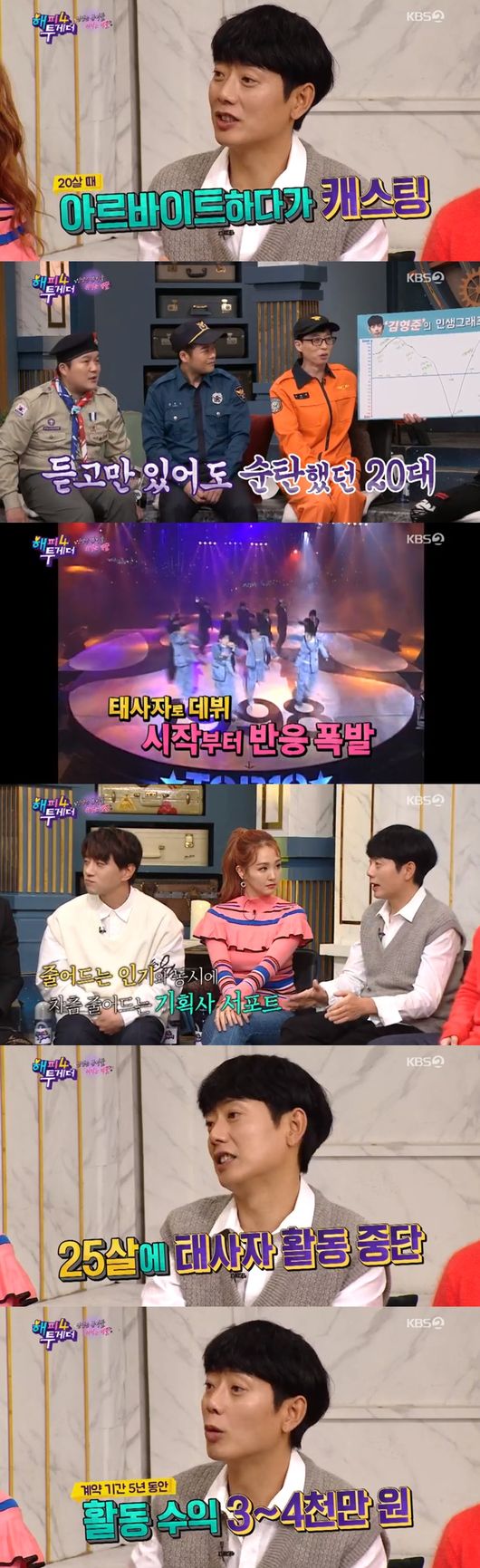 2일 방송된 KBS2TV '해피투게더4'에서는 '인생은 뷰티풀 위기는 개뿔' 특집으로 태사자의 김형준이 출연해 입담을 공개했다.