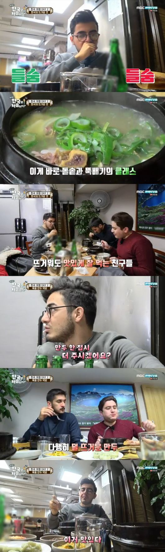 길거리 음식들로 먹방을 마친 후, 허기가 여전히 남은 친구들은 정식으로 저녁을 먹기 위해 한 식당으로 향했다. 바로 갈비탕과 뚝배기밥을 먹을 수 있는 곳이었다. 친구들은 처음 보는 뚝배기를 보며 놀라워하더니, 이내 경험하지 못한 뜨거운 음식을 맛 보며 화들짝 놀라기도 했다. 그나마 덜 뜨거운 만두를 먹으며 친구들은 몇번이고 리필해 웃음을 안겼다.