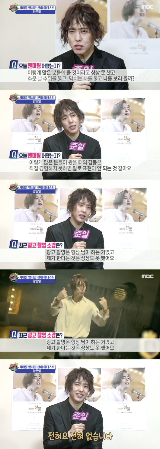 양준일은 CF까지 찍었는데 “CF는 언제나 남이 하는 거였고 내가 한다는 건 상상을 못했다”며 “과거 활동했을 때는 전혀 찍지 못했다. 그때는 CF도 그렇고 ‘섹션TV’도 나와지 못했다”고 했다.