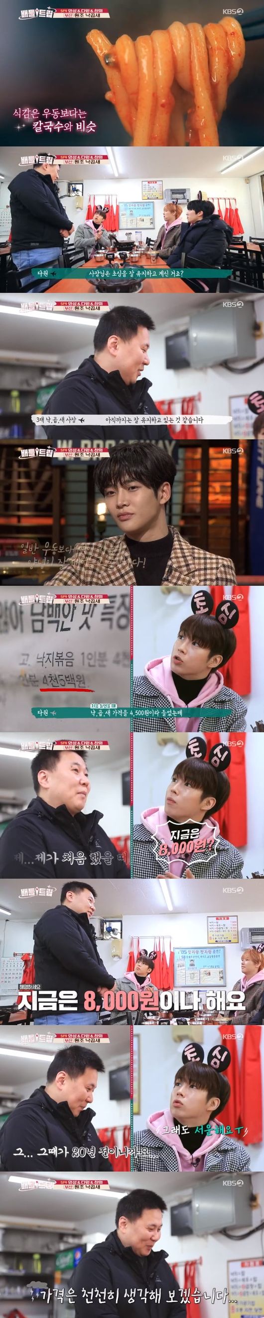 온천을 끝낸 멤버들이 허기를 달래기 위해서 원조 낙곱새집을 찾았다. "저 너무 기분이 좋다. 조미료를 넣지 않은 집이라고 적혀 있다"면서 다원이ㅣ 벽에 걸린 기사를 확인 했다. 낙곱새의 등장에 찬희가 "매운걸 못 먹는 저같은 분들도 잘 드실 수 있을 거 같다"고 했다. 스튜디오의 찬희가 "저 맛이 기억이 난다"고 하자 옆에 앉은 로운이 넋 나간 표정으로 멤버들의 먹방을 바라봤다.