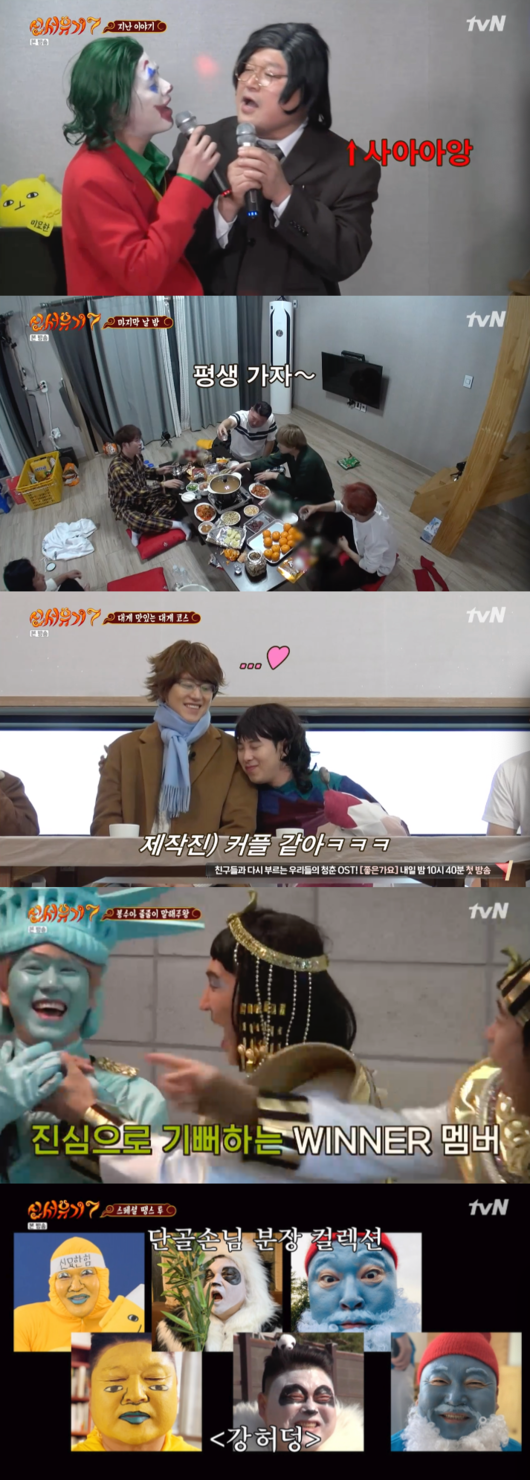 3일 전파를 탄 tvN ‘신서유기7’ 10회에서 멤버들은 촬영 마지막 날 밤 조촐한 회식을 즐겼다. 강호동은 동생들과 술잔을 기울이며 “우리 평생 가자. 가끔 다투기도 하고 삐치기도 하고 오해도 하고 하지만 평생 가자”고 말했다.