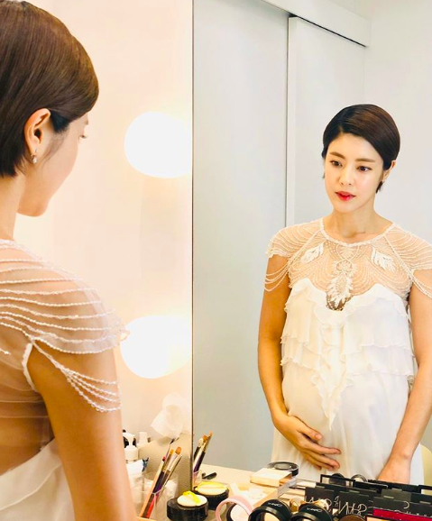 이윤지는 5일 자신의 SNS에 만삭 배를 바라보고 있는 사진을 게재했다.