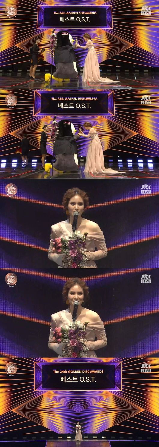가수 거미가 ‘제34회 골든디스크어워즈 with 틱톡’에서 '베스트 O.S.T.상'의 영광을 안았다.