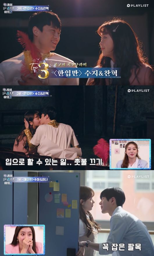 가장 먼저 베스트 키스신을 알아봤다. 3위로 ‘한입만’의 수지와 찬혁, 2위로 ‘연플리’의 강윤과 재인, 1위로 ‘에이틴2’의 주하와 하나가 선정됐다. 세 커플 모두 풋풋한 키스신을 완성해 시청자들의 가슴을 설레게 만들었던 바.