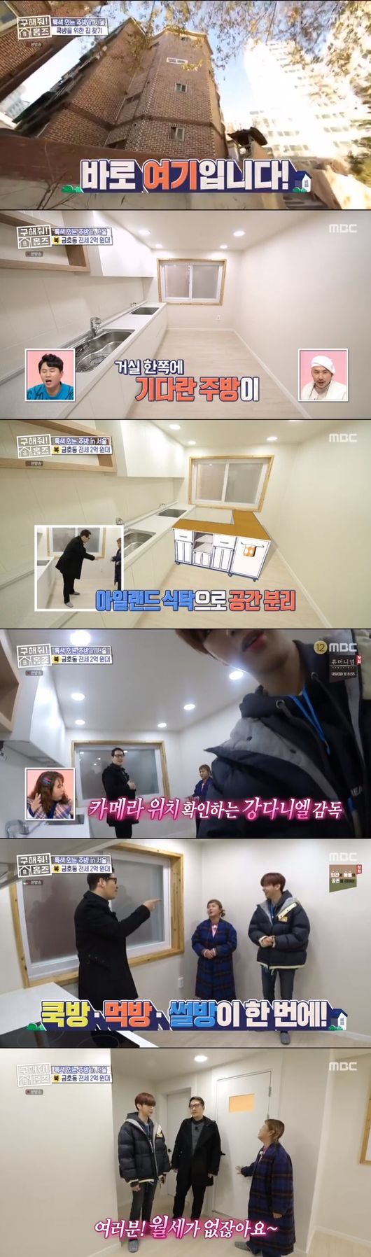 한편 이날 박나래x김풍x강다니엘은 금호동의 매물을 찾아나섰다. 박나래는 "의뢰인의 직장까지 걸리는 시간은 단 15분이다. 월세가 없다"며 만족해했다. 이어 2019년 리모델링을 했다는 집 내부로 들어갔다. 때묻지 않은 깔끔한 화이톤으로 되어 있었다.