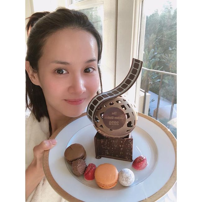 조여정은 6일 자신의 인스타그램에 "해뜨는 하늘보고 있는데 똑똑. 하고 #Goldenglobes 축하 쪼꼬렛 손님이. 무한히 영광스러운 날. 긍지를 가지고 다녀오겠어요^^"라는 글과 함께 사진을 게재했다.