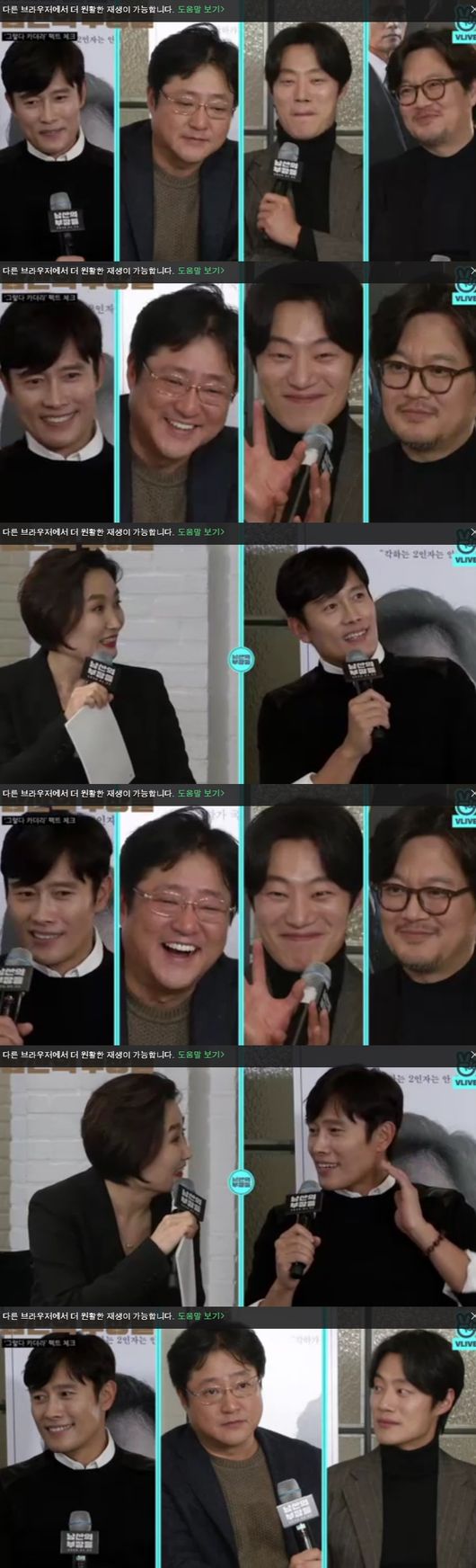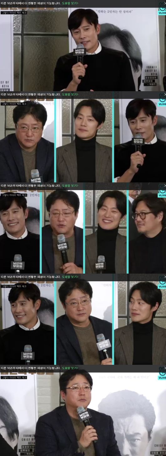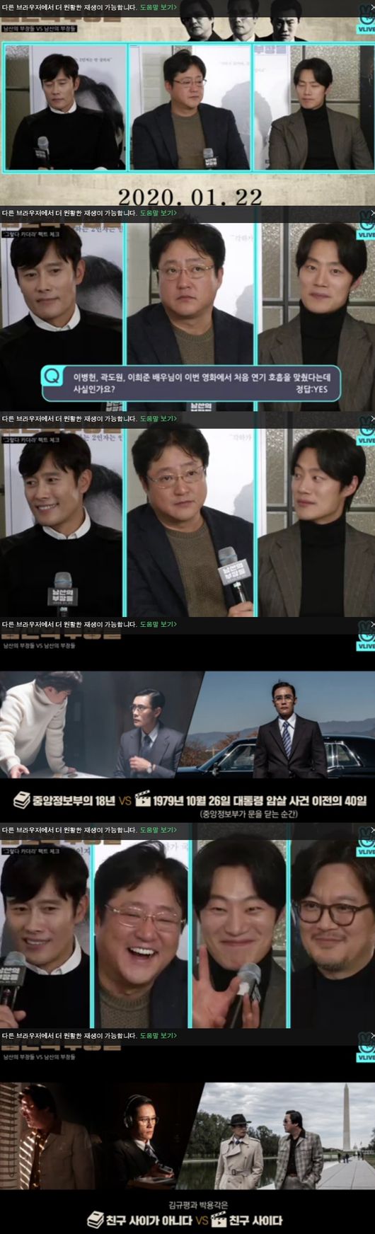 6일인 오늘 방송된 V라이브 '무비토크- 남산의 부장들'에서 배우 이병헌, 곽도원, 이희준 그리고 감독 우민호가 출연했다.
