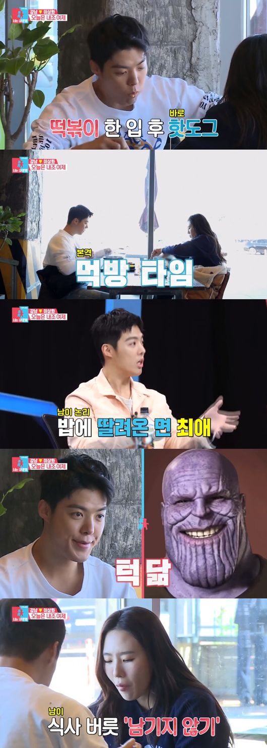 행사 현장으로 가던 강남과 이상화는 휴게소에서 떡볶이와 핫도그 먹방을 선보여 눈길을 사로 잡았다.