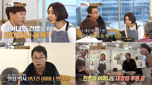 새해부터 새롭게 ‘김수미의 밥은 먹고 다니냐?’ MC로 합류한 이진호도 그동안 그 어디에도 말하지 못했던 사연을 털어놨다. 그는 “어머니가 3년째 대장암 투병 중이다. 항암치료만 24번을 하셨다. 항상 걱정되는 마음이다. 아침에 엄마 얼굴 못 보겠다. 내가 개그맨인데 약해진 멘탈로는 도저히 즐겁게 일을 할 수 없는 마음이기 때문이다”라며 눈물을 흘렸다. 이진호의 모습에 시청자들도 함께 안타까움을 감추지 못했다.