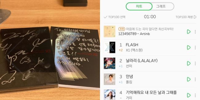 공개된 사진 속에는 엑스원의 'FLASH'가 음원 차트 1위에 오른 모습과 멤버들의 감사 메시지가 적힌 사인 앨범의 모습 등이 담겨 있다. 또한, 임한별은 엑스원의 쇼콘이 진행된 고척돔의 공연 동영상도 첨부했다.