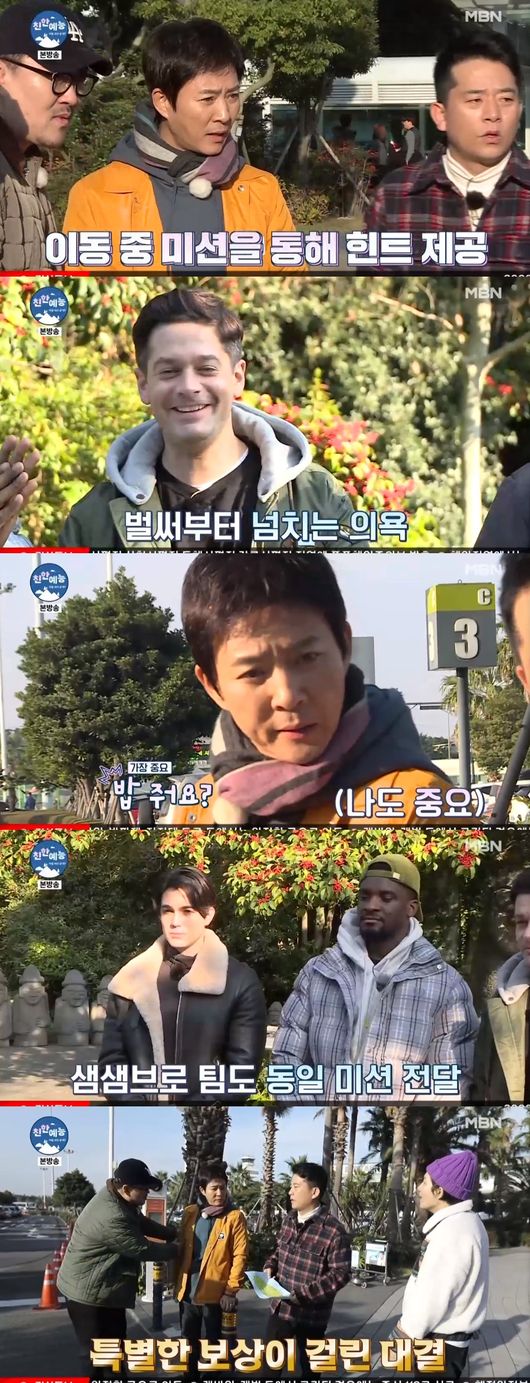 드디어 결전의 날, 첫 예능을 앞두고 제주도로 모였다. 한국팀 리더는 최수종이, 외국인팀 리더는 샘 해밍턴이 됐다. 특별한 보상을 걸고 첫 대결이 시작됐다. 일단 천지연 폭보로 먼저 출발하기로 했다.