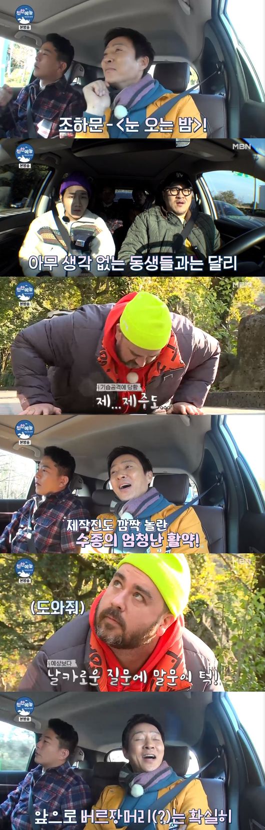 달리는 차 안에서는 제주도 방언에 대한 문제를 냈다. 센스있는 입담으로 답변이 오고간 가운데 천지연 폭포에 도착했다. 제작진은 '참참참' 게임으로 특산물 음식을 걸었다. 모두가 성공한 가운데 브루노만 참패해 웃음을 안겼다.