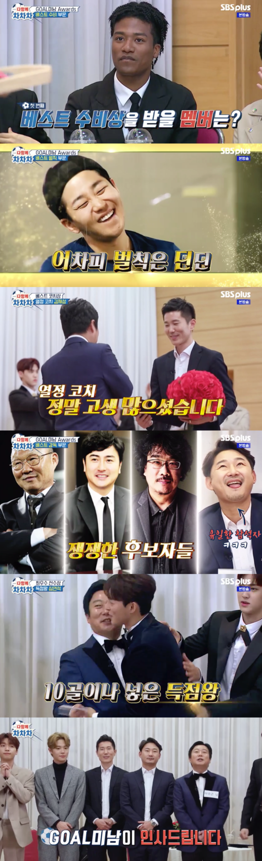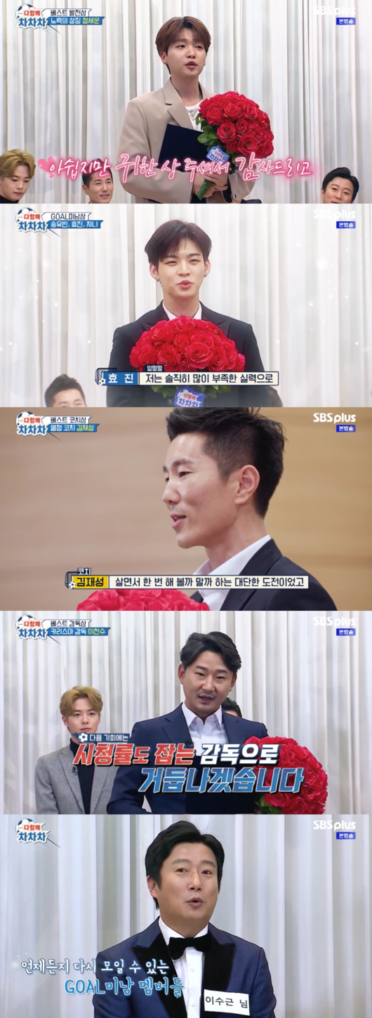 7일 방송된 SBS플러스 ‘다함께 차차차’ 최종회에서 이수근, 유승우, 딘딘, 김관수, 이진호, 노지훈, 정세운, 한현민, 박규선, 심연석, 효진, 송유빈, 이천수, 김재성은 자체 시상식을 열고 한 시즌 동안 수고한 서로를 격려했다.