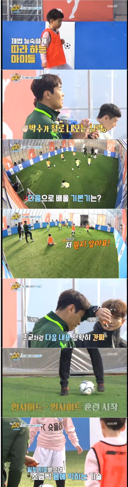 정원과 지원은 인사인드 기술을 곧잘 잘 익히면서 남다른 학습 능력을 보였다. 이어 서진도 배운대로 열심히 하면서 상급 기술도 익힐 수 있게 됐다. 이어 인사이드 패스가 2인 1조로 시작 됐다. "공을 끈까지 봐야죠"라는 말에 지훈과 정원이 환상의 호흡을 보였다.