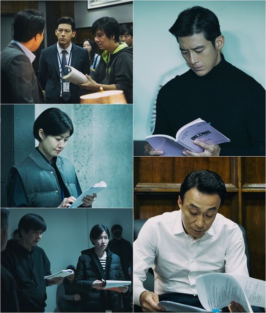 이 가운데 공개된 비하인드 스틸은 고수-이성민-심은경의 연기 내공 비결을 알 수 있게 한다. 본 촬영 이외에도 매 순간 집중력을 흐트러뜨리지 않고 연기에 몰입해 있는 것. 세 사람은 리허설임에도 불구하고 온에어 장면을 보는 듯, 형형한 눈빛으로 시선을 사로잡는다. 특히 고수와 이성민은 금방이라고 스파크가 튈 정도로 팽팽한 텐션을 뿜어내 보는 이의 감탄을 자아낸다. 뿐만 아니라 고수-이성민-심은경은 쉬는 시간에도 대본을 손에서 놓지 않으며 열정을 뽐내고 있어 ‘머니게임’에서 선보일 세 사람의 열연에 기대감이 수직 상승한다.