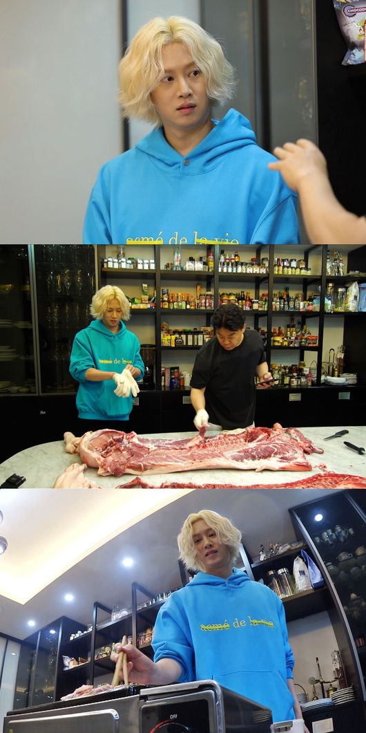 또 백종원이 멤버들에게 내준 돼지고기 요리 숙제가 공개됐다. 백종원은 ‘맛남의 광장’ 대표 ‘요알못’인 김희철을 배려해 일대일 특급 과외를 준비했다. 그는 김희철을 집으로 초대해 마장동에서 공수한 돼지 반 마리를 직접 해체하며 부위를 하나하나 설명해줬다.