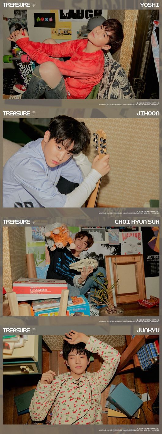 YG는 8일 정오 공식 블로그에 최현석, 지훈, 요시, 준규 이미지를 공개했다. 'TREASURE EDITORIAL vol.1'이라는 타이틀이 붙었다. 멤버별 매력을 담은 개인 프로필 사진이 순차적으로 공개될 것임을 암시해 팬들의 기대감을 한껏 끌어올렸다.