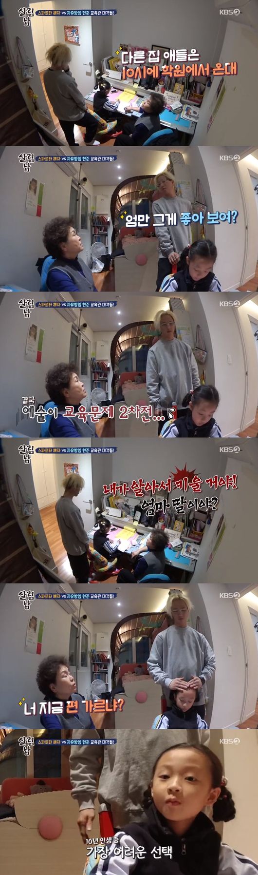 8일에 방송된 KBS2TV '살림하는 남자들2'에서는 팝핀현준과 어머니는 딸 예술이의 공부법을 두고 옥신각신하는 모습이 그려졌다.