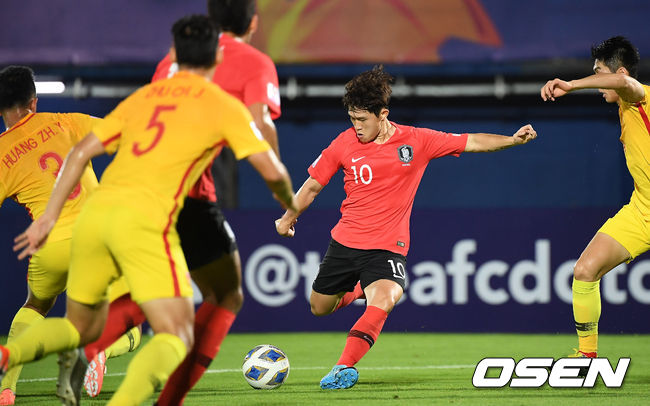 김학범 감독이 이끄는 한국 23세 이하(U-23) 축구대표팀은 9일 밤 태국 송클라 틴술라논 스타디움에서 열린 아시아축구연맹(AFC) U-23 챔피언십 조별리그 C조 1차전 중국과 경기에서 전반을 0-0으로 마쳤다.