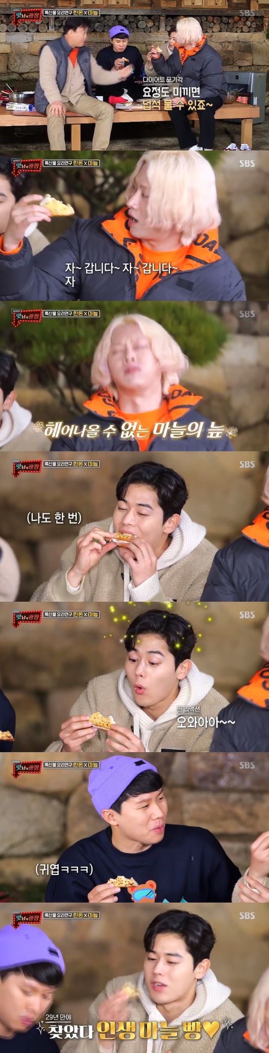 이어 희철이 다이어트를 포기하고 마늘빵 폭풍 시식을 이었다. "무슨 소리 안들리세요? 희철이 살 찌는 소리"라는 말에 멤버들이 폭소했다. 종원이 "이렇게 먹는거야"라고 하면서 스튜를 한입 먹고 난 뒤 빵을 베어 물었다. "빵은 차가울 때 크림을 발라야 크림이 녹지 않는다"는 지령이 떨어졌다. /anndana@osen.co.kr