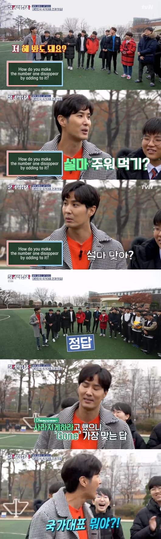 곧이어 문제가 출제되고, 침묵이 흐른 가운데 올림피아드 수상자 친구들이 여러가지 정답을 시도했으나 모두 오답 처리가 된 가운데. 지석이 답을 맞춰서 학생들의 박수를 받았다.