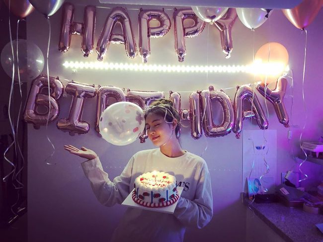 사진 속에서 이선빈은 케이크를 들고 풍선들 속에서 행복한 미소를 짓고 있다. 또 다른 사진에서는 선물과 편지 등을 받고 감동해 하고 있는 모습이다. /kangsj@osen.co.kr