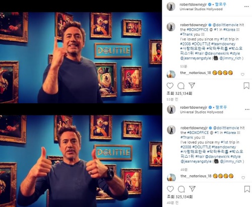 더불어 SNS 본문에 2008년 처음으로 방문한 한국을 지금까지 사랑해왔음을 전하며 한국어로 "#사랑해요한국 #닥터두리틀 #박스오피스1위"를 남겼다.