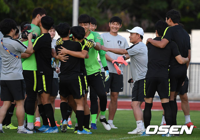 2차전을 준비 중인 김학범호가 덥고 습한 날씨와 싸우고 있다.