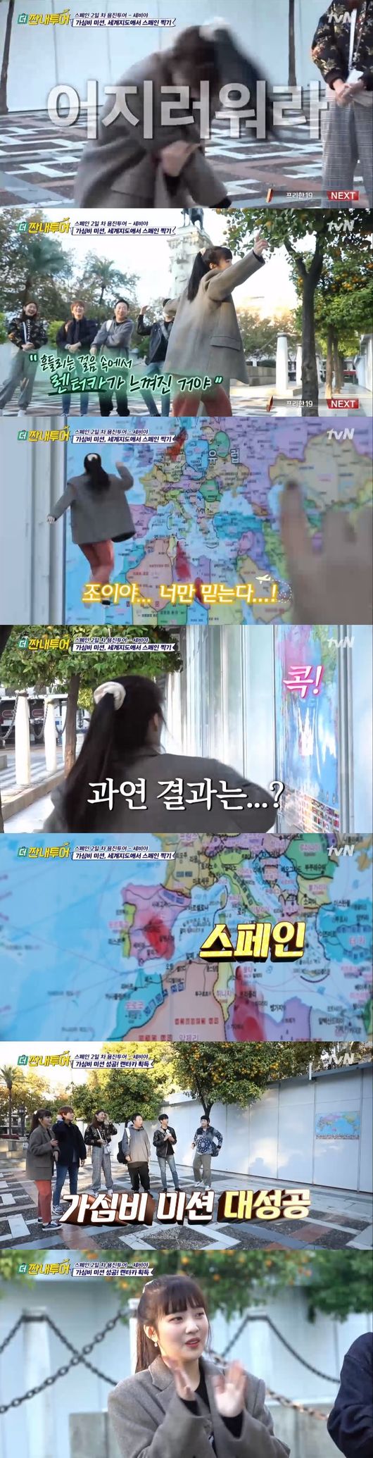 아침커피와 빵을 먹은 멤버들은 가심비 미션을 시작 했다. 코끼리코 10바퀴를 돌고 나서 손가락으로 바로 스페인에 지장을 찍어야 하는 미션이었다. "최초로 렌트카를 가지고 진행한다"는 말에 용진이 "실패하시죠 이거 제가 운전을 해야해서"라고 했다. 유진은 코끼리코도 비틀거리면서 제대로 돌지 못해 웃음을 사는 한편, 손가락으로 리비아를 찍었다.