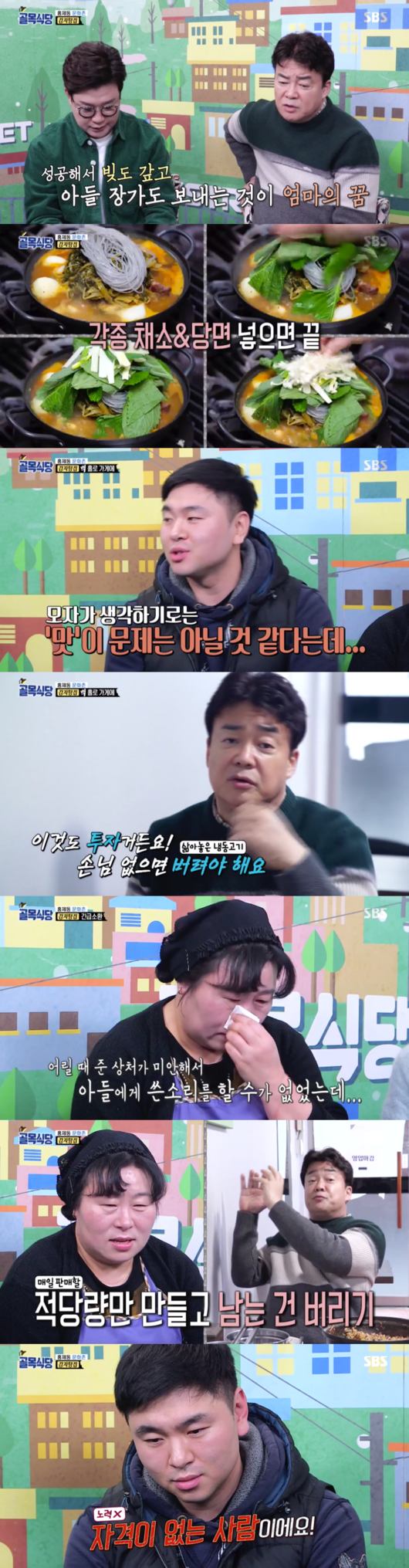 조리 담당인 어머니 사장은 남편과 함께 사진관을 운영하다가 IMF에 도둑까지 겹치자 거듭된 실패에 내리막길 인생을 걷고 있다고 한탄했다. ‘골목식당’을 통해 빚을 갚고 아들을 장가보내고 싶다고. 38살 된 아들 역시 감자탕집을 물려받아 결혼하고 싶다고 했다.