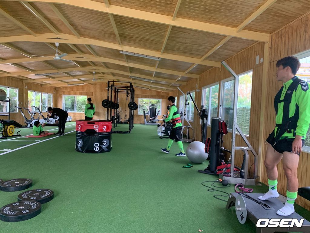 그라운드 훈련을 모두 마친 뒤 운동장 한켠에 마련된 트레이닝장에서 스쿼트와 코어, 밴드 운동 등을 실시했다.