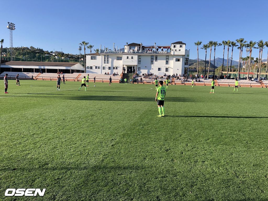 전북 현대가 스페인 전지훈련 연습 경기서 치열한 모습을 선보였다.
