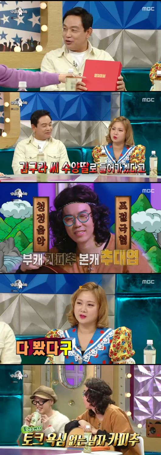 5일 방송된 MBC 예능 '라디오 스타'에서 기리보이, 카피추의 추대엽, 박나래, 김영철이 출연했다.