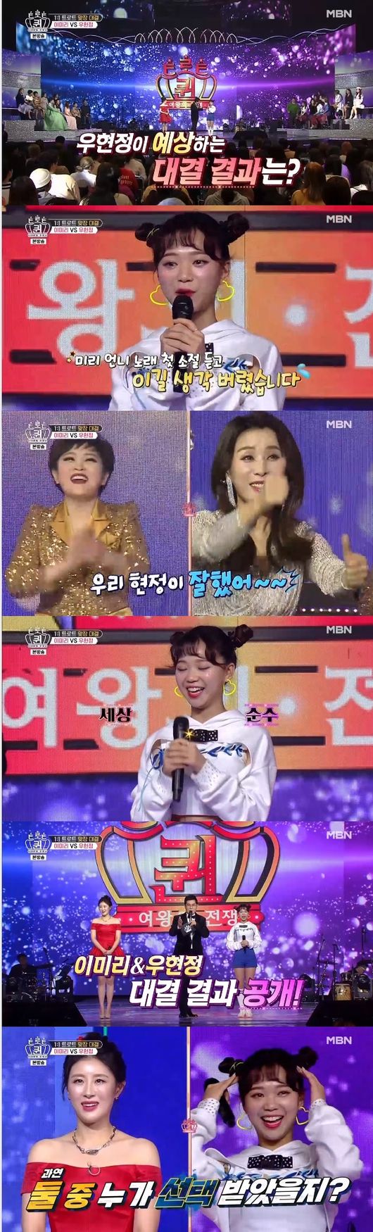 5일 오후 방송된 MBN '트로트퀸'에는 우현정과 이미리의 대결이 진행 됐다.
