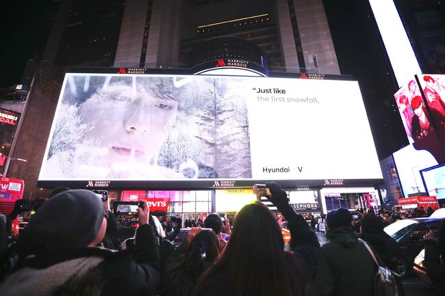 현대자동차가 21일(현지시각) 미국 뉴욕 타임스퀘어에서 방탄소년단이 출연한 ‘글로벌 수소 캠페인’ 영상을 공개했다. 현대자동차와 방탄소년단이 펼치는 글로벌 수소 캠페인의 일환이다. 이 프로젝트가 주느 메시지는 "자연이 삶에 주는 감동"이다.