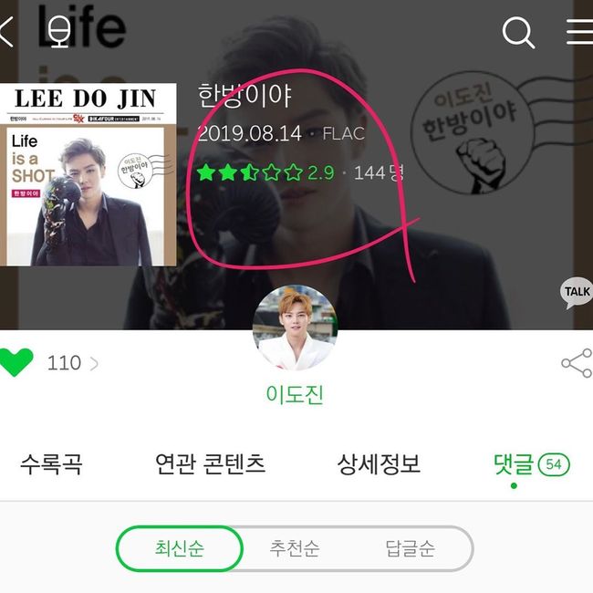 또한 이도진은 한 음원사이트에서 ‘한방이야’가 기록한 데일리 감상자 수가 283명이고, 평점이 2.9점이라는 걸 캡처한 사진을 공개했다. 감상자 수가 300명도 채 되지 않고 평점이 3점을 넘지 못하는 곡이 사재기라는 건 말이 안된다는 것.