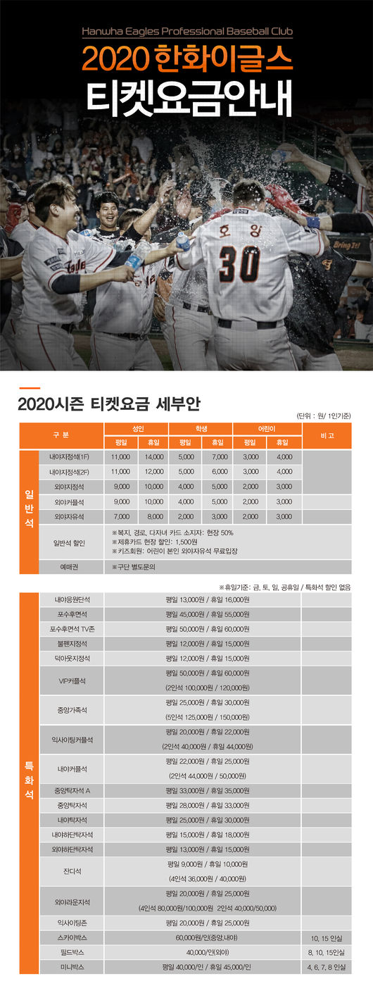 한화는 26일 “2020시즌 티켓 요금을 동결하기로 결정했다”고 전했다.