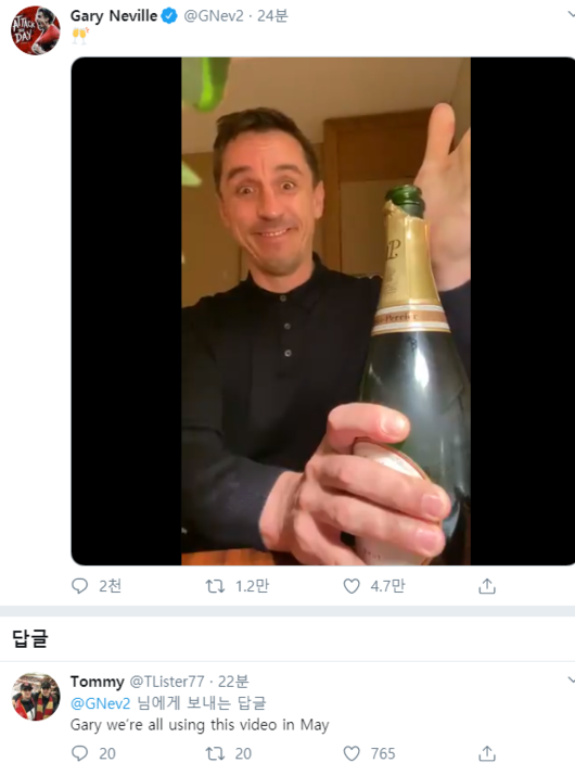 당연히 리버풀 팬과 타팀 팬의 반응도 극명히 엇갈렸다. 타팀 팬들은 네빌의 영상에 환호하며 '캐러거 울지 말고 이야기 해봐'라고 신난 반응을 보였다.