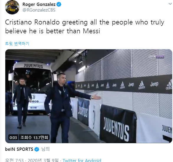 미국 'CBC 스포츠'의 로저 곤잘레스 기자는 "호날두는 아마 자신이 리오넬 메시보다 뛰어나다고 생각하는 모든 사람들을 반기고 있는 것 같다"라고 비웃었다.