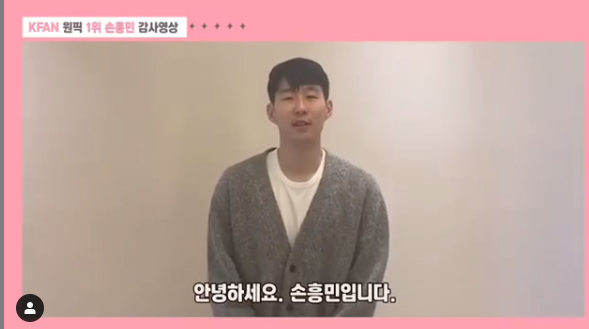 손흥민은 "오랜만에 팬들께 인사드린다. 팬들 덕에 수술도 잘하고 재활도 열심히 하고 있다. 팬들이 뽑아주신 투표서 1위에 올라서 기쁘면서도 쑥쓰럽다. 그래도 감사드린다"라고 미소를 보였다.