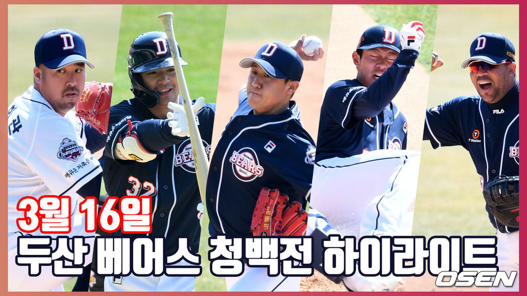 두산은 16일 서울 잠실구장에서 자체 청백전을 진행했다. 일본 미야자키 캠프에서 두 차례 청백전을 치른 가운데 세 번째 청백전이자 한국에서의 첫 청백전이다. 이날 경기는 5이닝으로 진행된 가운데 청팀이 4-2로 승리를 거뒀다.