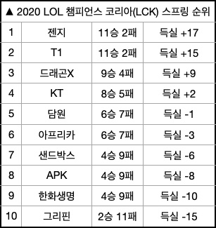 이 승리로 시즌 6승(7패, 득실 -1)을 달성한 담원은 전경기에서 패배한 아프리카를 끌어내리고 다시 서부 리그로 향했다. 시즌 9패째(4승, 득실 -10)를 당한 한화생명은 9위로 추락하며 승강전 탈출을 장담할 수 없는 상황에 놓였다.