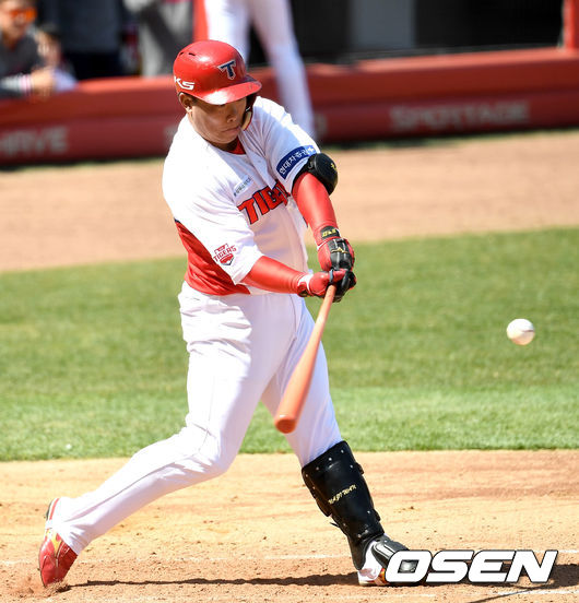 KIA타이거즈 4번타자 나지완(35)이 홈런포를 터트렸다. 외국인투수 애런 브룩스(30)는 위력적인 무실점 투구를 했다.