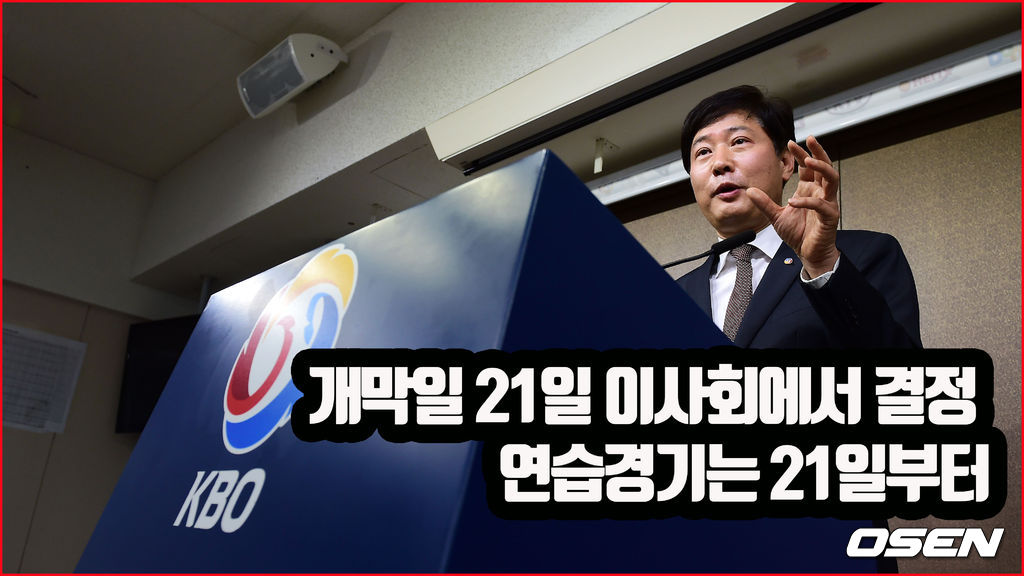 KBO는 코로나19 위험이 계속되고 있다는 판단하에 개막일 확정을 보류했다. KBO는 “정부의 사회적 거리두기 강화 기간이 종료되는 오는 19일 이후 확진자 추세 등을 판단해 21일 이사회를 열고 정규시즌 개막일을 확정할 예정”이라고 설명했다.