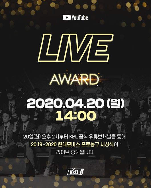 KBL은 "이번 시상식으로 ‘코로나19’로 인한 정부의 사회적 거리 두기 정책에 참여하기 위해 별도 행사 없이 수상자들만 초청해 진행되며 ‘KBL TV(유튜브)’를 통해 온라인으로 생중계 된다"고 밝혔다.
