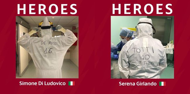 여러 의료진은 프란체스코 토티(전 AS 로마)나 안드레아 벨로티(토리노) 등 자신이 좋아하는 선수들의 이름과 번호를 등에 세기고 코로나와의 사투에 나서고 있다.