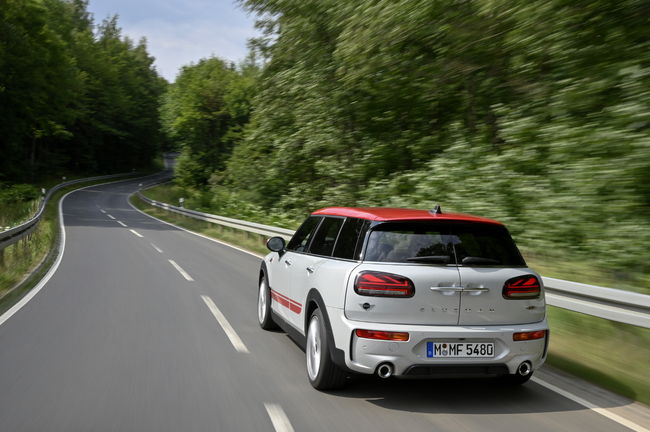 각진 형태로 새롭게 디자인돼 공기역학 및 연료효율이 개선된 사이드 미러캡, 선처리가 더욱 명확하고 간결해진 19인치 JCW 경합금 휠, 풀 LED 구성의 유니언잭 후미등, 날렵해진 디자인으로 차량의 너비와 존재감을 강조하는 테일 파이프 및 범퍼 등을 통해 기존 MINI JCW 클럽맨과 차별화를 뒀다.