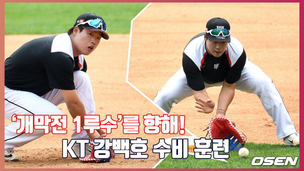 지난 달 26일 KT 이강철 감독은 "강백호 1루수를 확정했다"고 밝혔다. 이강철 감독은 스프링캠프 이후 강백호를 1루로 기용하면서 테스트를 했다. 지난해 외야수로 나섰던 강백호는 꾸준히 1루수로 나섰고, 고교 시절 포수를 봤던 만큼 안정적인 포구를 보였다. 또 타고난 센스를 바탕으로 강습 타구도 곧잘 잡아내면서 1루수로서 가능성을 엿보게 했다.
