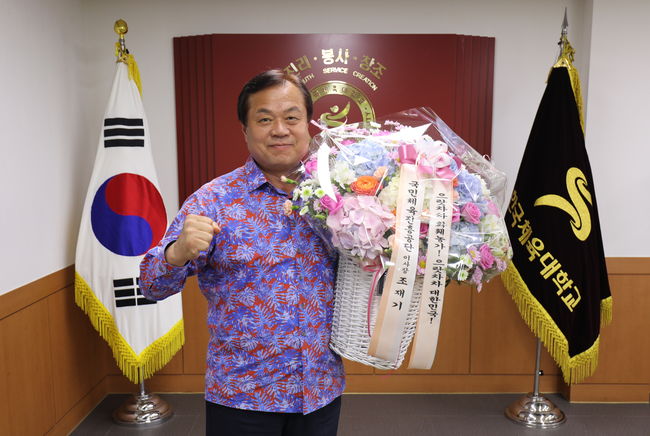 안용규 한국체육대학교 총장이 11일 신종 코로나 바이러스 감염증(코로나19)으로 어려움을 겪는 화훼 농가를 돕기 위한 ‘플라워 버킷 챌린지’에 동참했다.