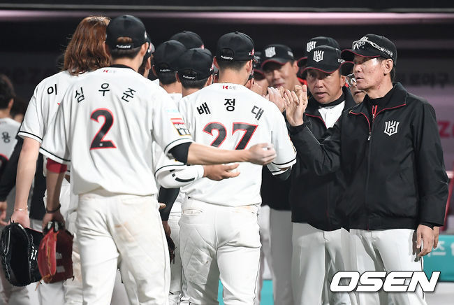 경기를 마친 뒤 이강철 감독은 "데스파이네가 1선발 답게 안정적이고 노련한 투구를 했다. KBO리그 첫 승을 축하한다. 신인인데도 담대하게 안방을 지킨 강현우도 좋은 모습을 보여 앞으로 팀 전력에 좋은 보탬이 될 것 같다"고 칭찬했다. 이어서 "어제 이어 테이블세터가 공격의 활로를 열고, 중심타선이 해결하며 하위 타선이 연결하는 흐름이 승리로 이어졌다"고 활약에 미소를 지었다. / bellstop@osen.co.kr